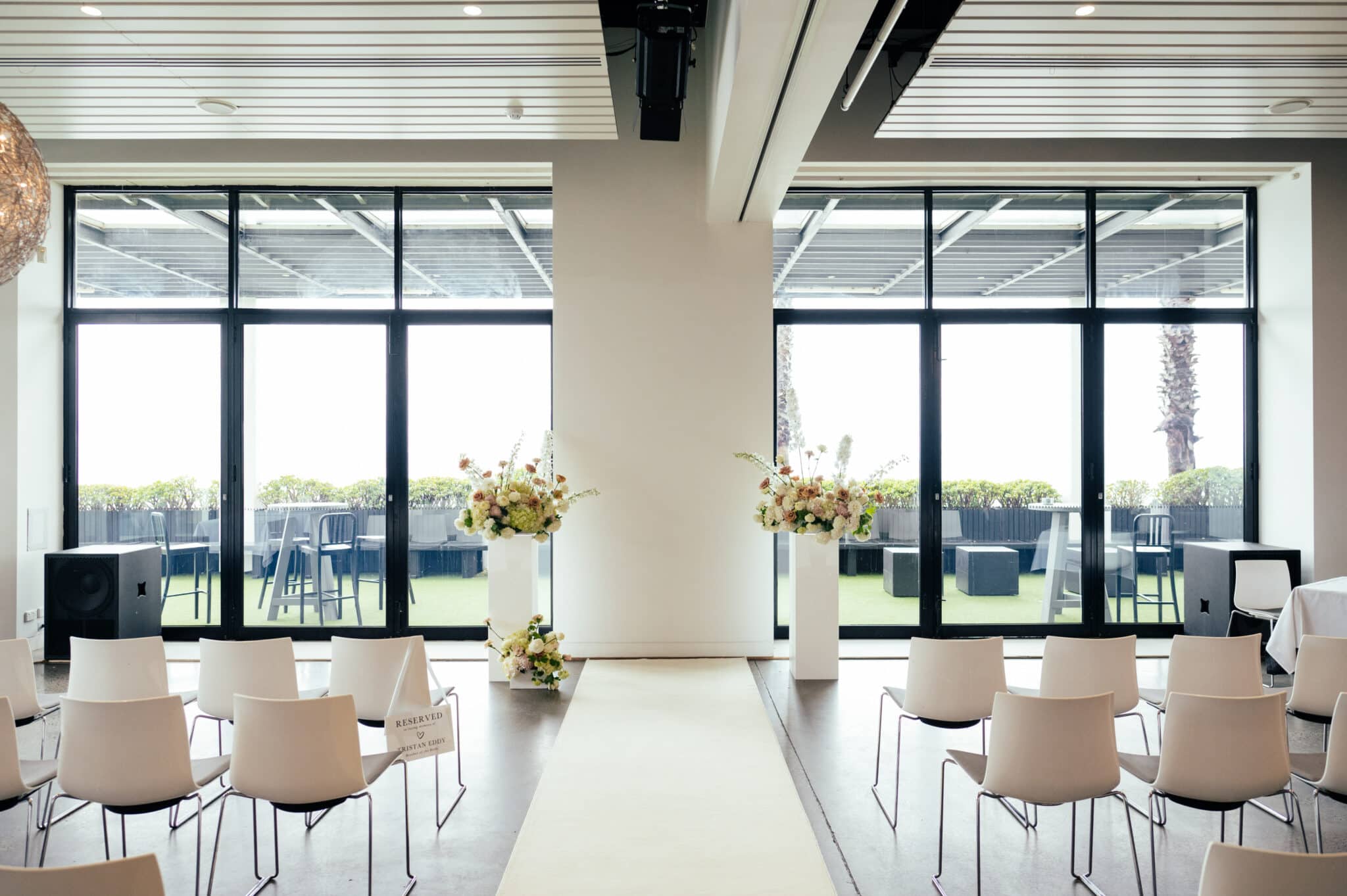 Encore will provide up to 50 white chairs for your ceremony. There is ample standing room available, or additional chairs are welcome to be hired externally.